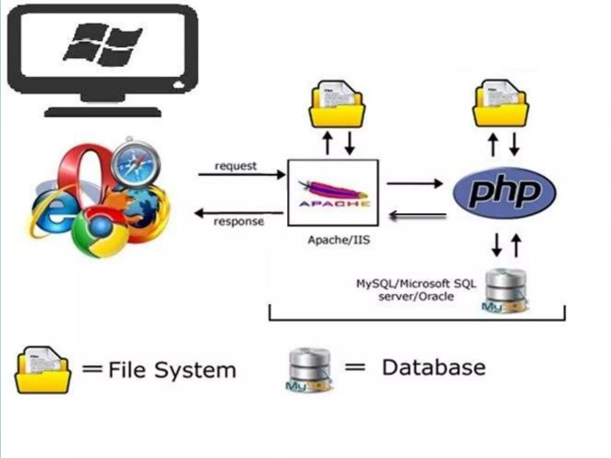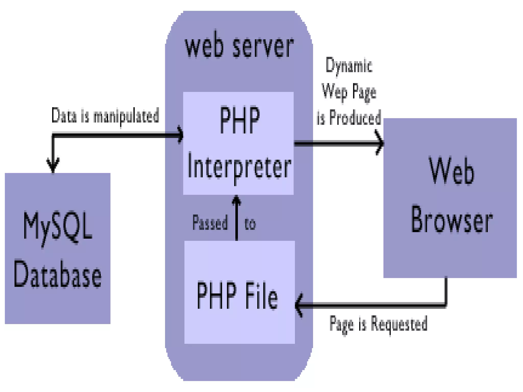 - PHP is an interpreted, server-side scripting language originally designed for web development. It is embedded into HTML and can interface with databases.