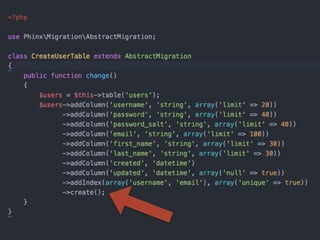 • Write database migrations using PHP code
