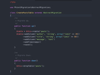 $ vendor/bin/phinx create CreatePostsTable