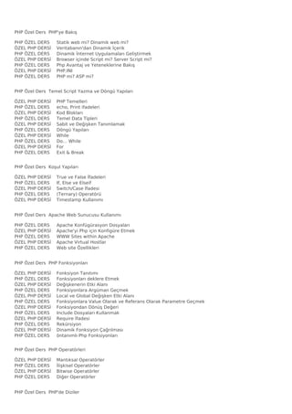 PHP Özel Dersi, PHP programlama dilini öğrenmek isteyen ve daha önce bir programlama diline aşinalık sahibi