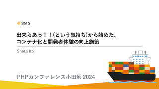 Ltd. 1 PHPカンファレンス小田原 2024 出来らあっ!!(という気持ち)から始めた、 コンテナ化と開発者体験の向上施策 Shota Ito