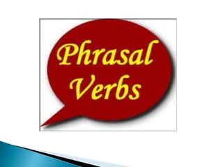 This document discusses phrasal verbs, which are two-part verbs consisting of a verb and a particle. It provides examples of common phrasal verbs like "grow up", "take after", and "count on". The document notes that phrasal verbs can have two different patterns: N + V + N + p or N + V + p + N. These patterns determine whether the particle precedes or follows the object of the verb.