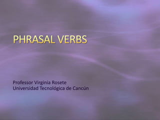This document discusses phrasal verbs, which are verbs combined with particles that change the verb's meaning. It provides examples of how adding "on" or "off" to the verb "turn" changes its meaning. The document explains that phrasal verbs can be separated if there is a direct object, placing the object between the verb and particle. If there is no direct object, a preposition after the phrasal verb indicates it cannot be separated. Sample sentences are provided to demonstrate phrasal verbs with and without objects.