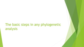 The document outlines the basic steps in constructing a phylogenetic tree: