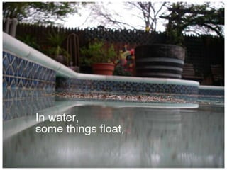 - Some materials float in water while others sink, depending on their density. Liquids like oil also float due to being less dense than water.