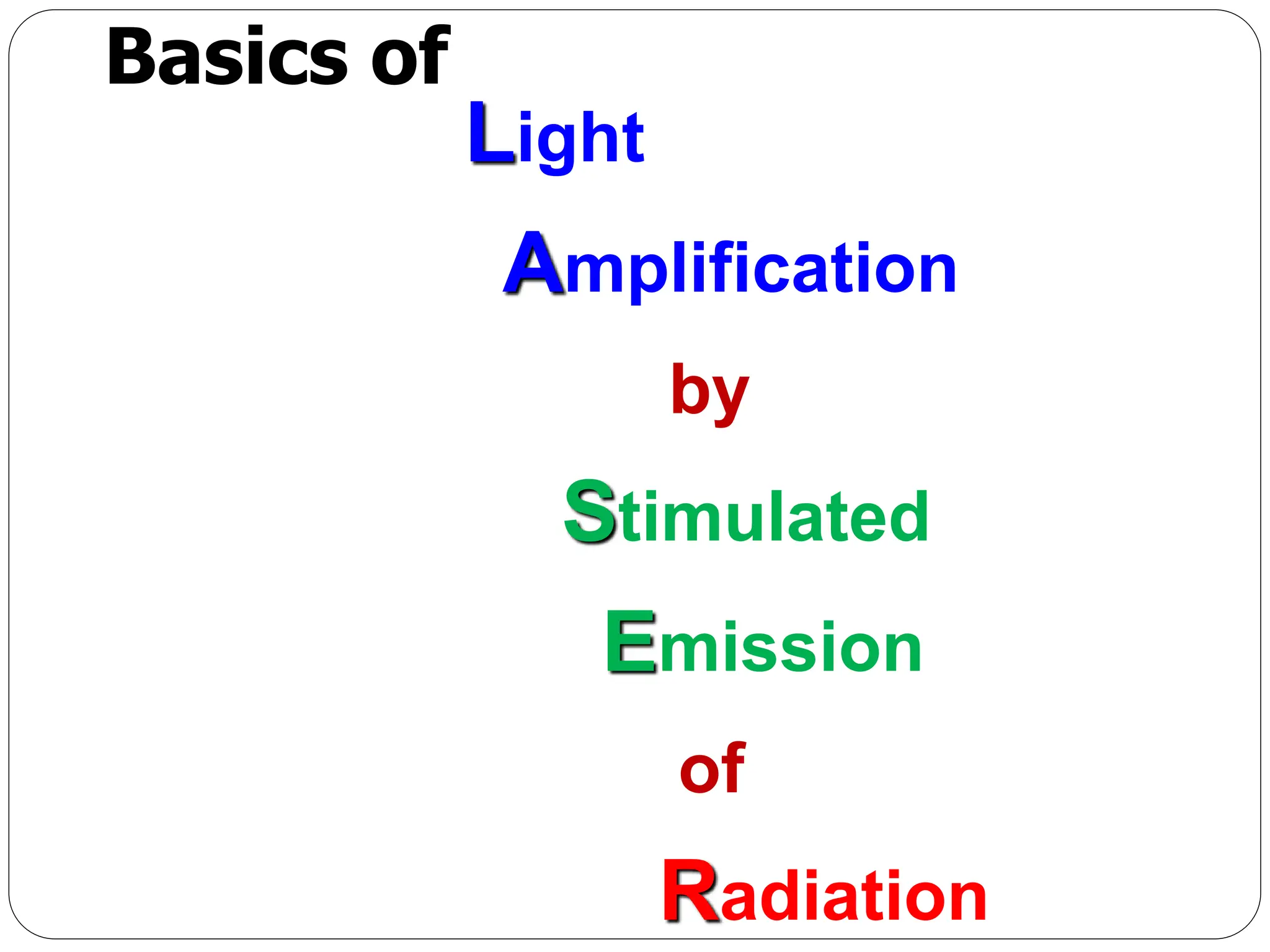 1. The document discusses the basics of lasers including their properties like intensity, monochromaticity, directionality, and coherence.