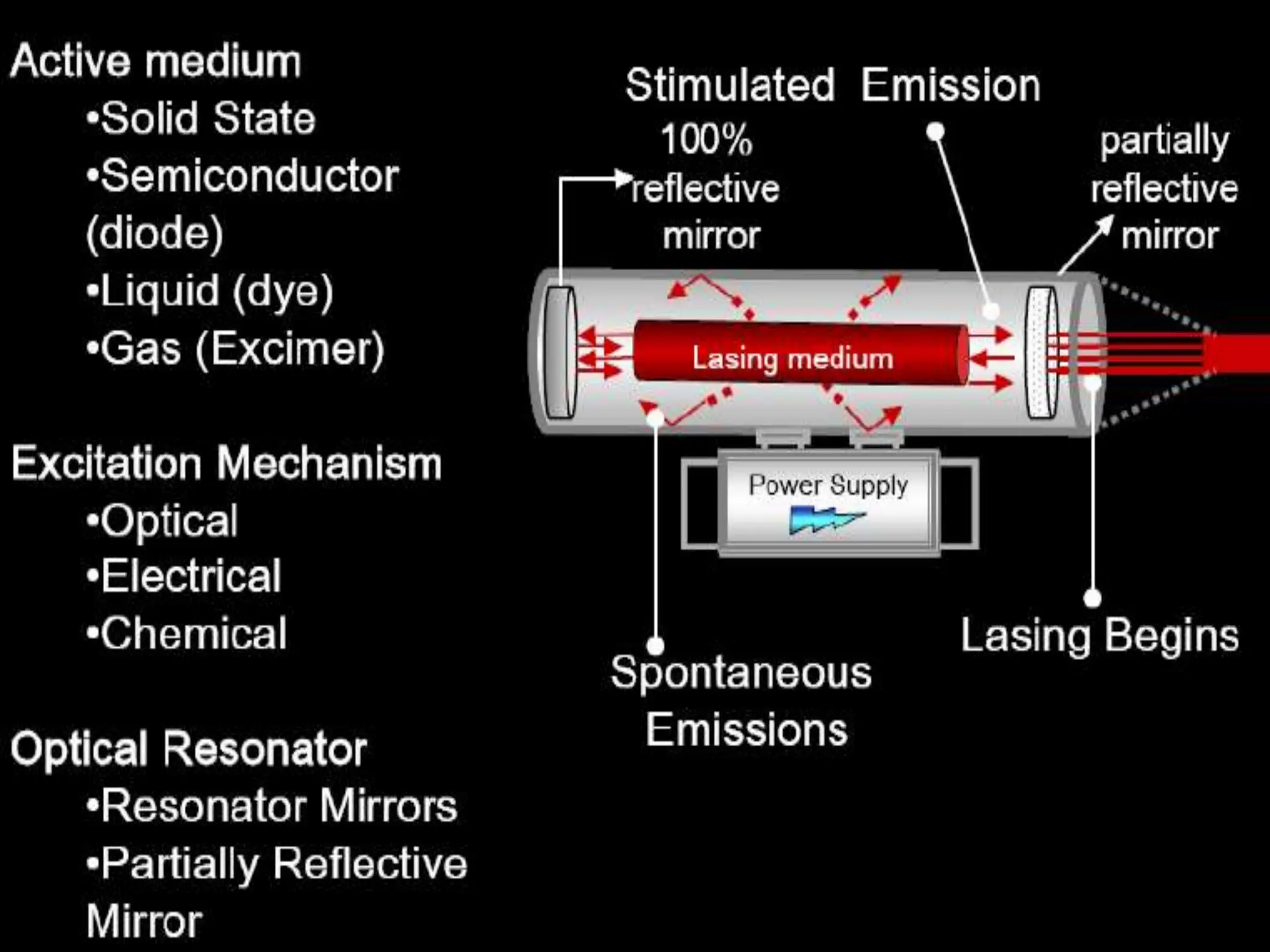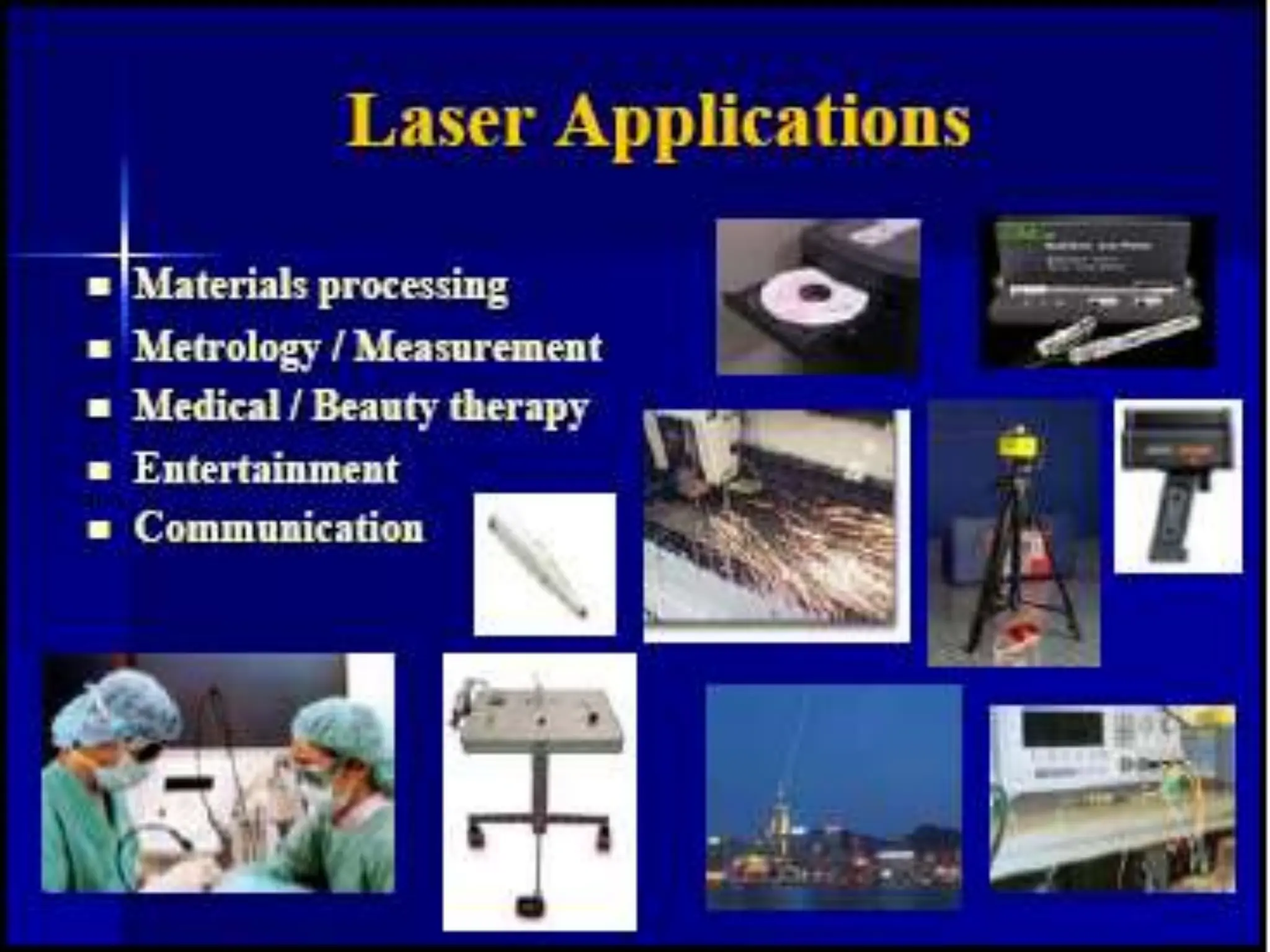3. Examples of different types of lasers are provided, including solid state lasers like ruby lasers, semiconductor lasers, gas lasers, dye lasers, and excimer lasers.