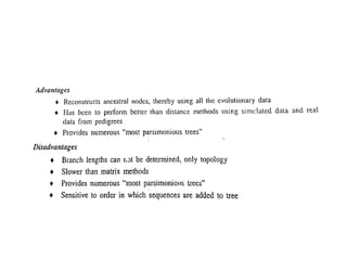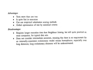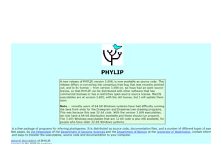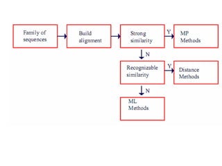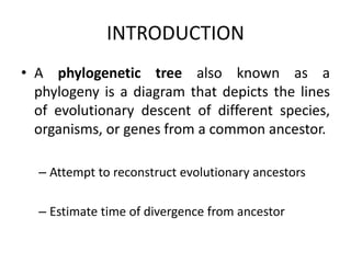 Mr. Nitin Maruti Naik presented on phylogenetic analysis. Phylogenetic analysis involves constructing phylogenetic trees that depict the evolutionary relationships between species or genes. There are two main types of methods for phylogenetic analysis - distance methods that construct trees based on sequence similarity, and character methods that consider evolutionary pathways. Popular tools for phylogenetic analysis include PHYLIP, which offers parsimony, distance, and likelihood methods, and ClustalW, which performs progressive multiple sequence alignments.