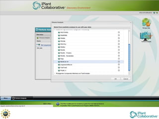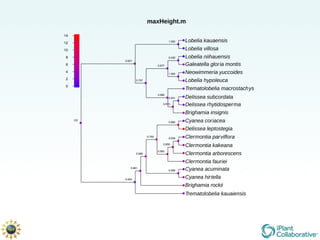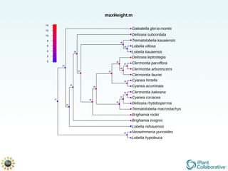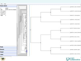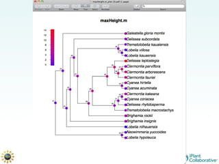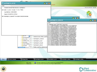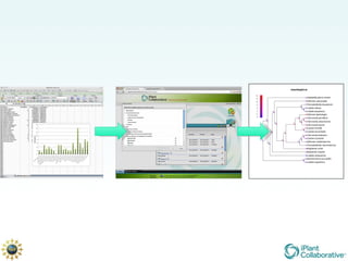 The document discusses the importance of phylogenetic workflows in building and analyzing the tree of life, emphasizing their significance in understanding evolutionary relationships in plant biology. It outlines various methods and tools for data acquisition, sequence alignment, tree building, and visualization, highlighting advancements in scalability and performance for handling large datasets. Additionally, it introduces specific applications and services like the iPlant Tree Viewer and Taxonomic Name Resolution Service (TNRS) to enhance data integration and analysis.