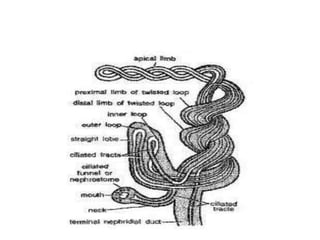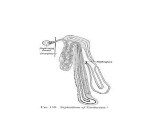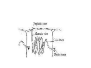 3) There are different types of nephridia including protonephridia, metanephridia, micro/mero nephridia, and mega/holo nephridia. Nephridia can also be exonephric or enteronephric. In