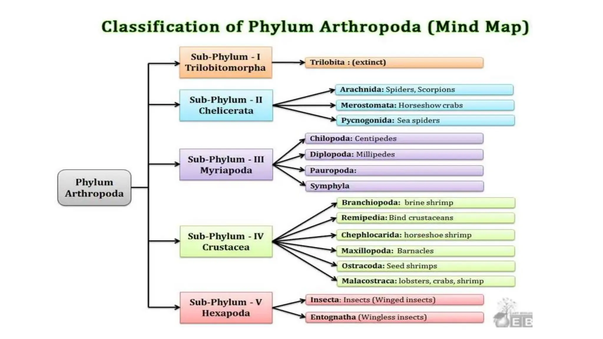 Diagnostic features of each class: Insecta, Arachnida, Crustacea, Chilopoda, Diplopoda, etc.