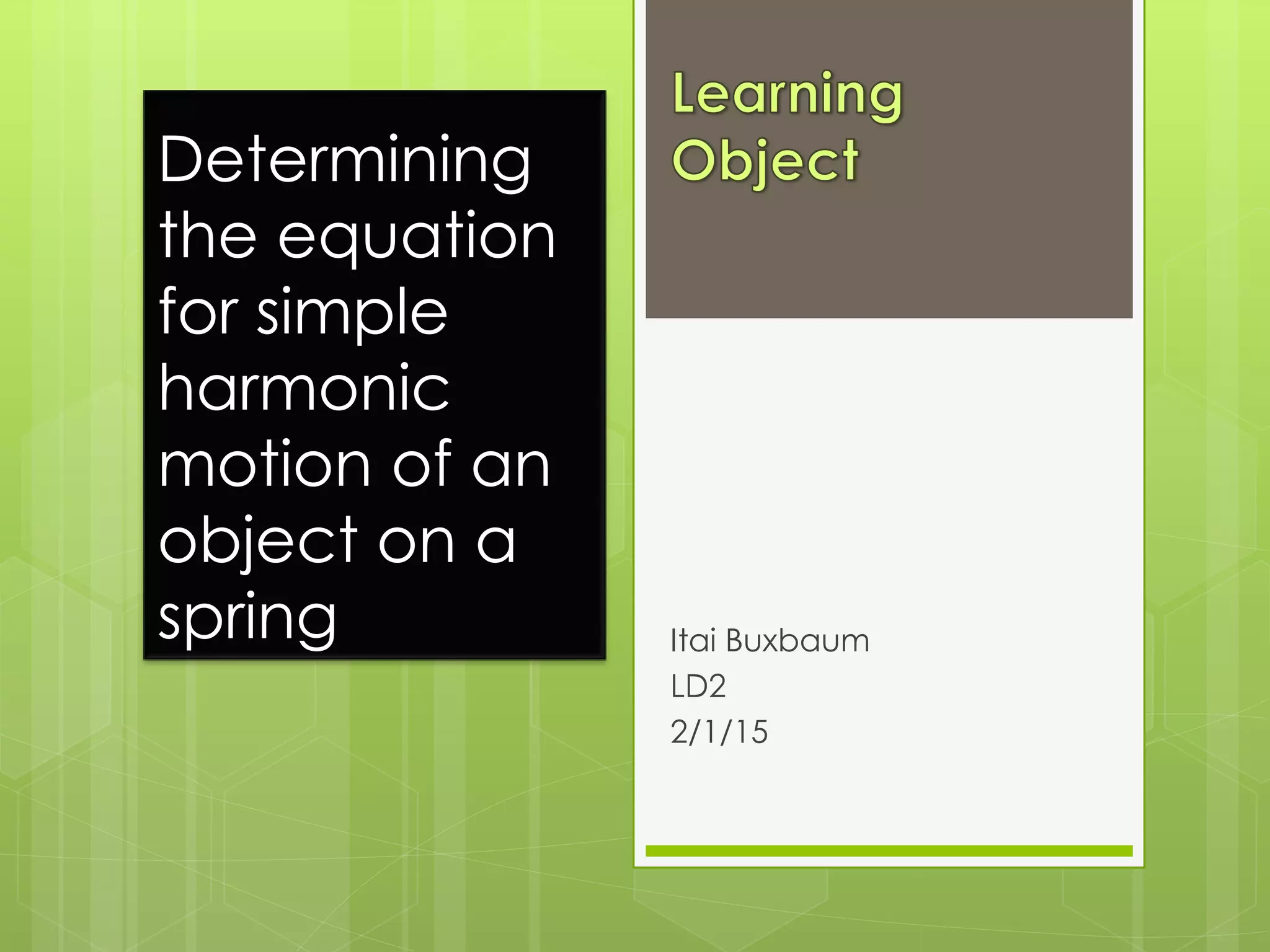 2) Key values like the mass, amplitude, period, and angular frequency are determined from the description and used to derive the equations of motion.