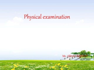 The document outlines the comprehensive procedures and techniques involved in conducting a physical examination, including inspection, palpation, percussion, auscultation, and various assessments of the body's systems. It details the necessary equipment, patient preparation, and the systematic evaluation of different body parts, emphasizing factors such as vital signs, skin conditions, and neurological assessment. Additionally, it provides guidelines for aftercare and documentation following the examination.