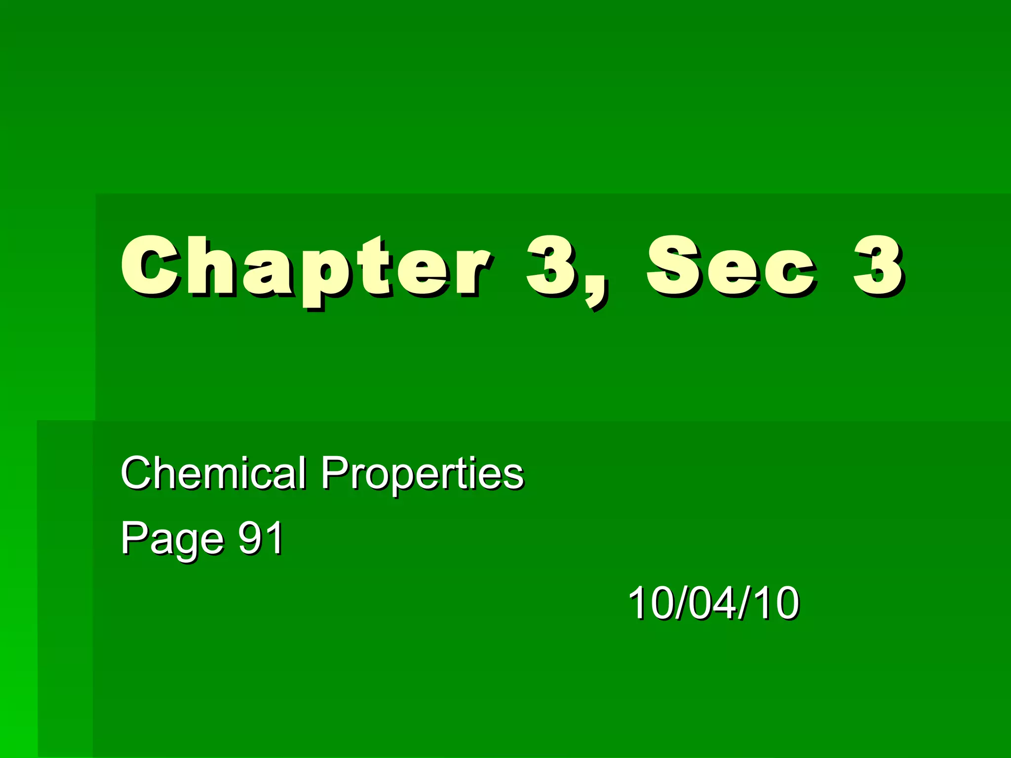 The document discusses chemical properties of matter including reactivity and comparing physical and chemical properties. It notes that a chemical property can only be observed through a chemical change that alters the substance. Some signs that a chemical change has occurred include changes in color, odor, gas production, sound, light, or temperature. It also states that chemical changes tend to be irreversible.