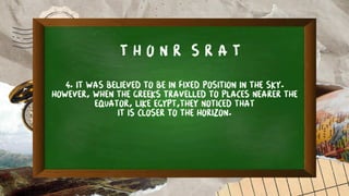 - Navigation na yung concept na yung stars para malaman kung anong buwan na, kung nasaan ka, sila yung unang nagsabi na mayroong SOLAR SYSTEM at yung arrangement at system sa ating universe at hindi random