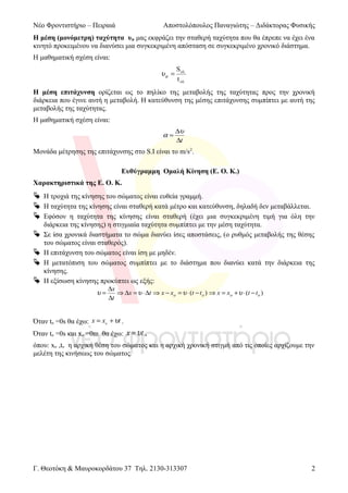 διάρκεια της κίνησης) η στιγμιαία ταχύτητα συμπίπτει με την μέση ταχύτητα.