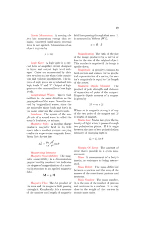 The document serves as a draft physics dictionary, covering various fundamental concepts and terms such as atoms, acceleration, radioactive decay, and energy-related phenomena. It defines key terms, provides mathematical relationships, and explains principles like Bernoulli's theorem and the Bohr atomic model. The content is organized into sections that include definitions, laws, and principles relevant to physics and its applications.