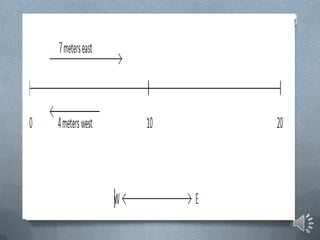This document discusses key concepts in one-dimensional motion physics including displacement, distance, velocity, speed, and average velocity. It provides examples and problems to illustrate the differences between scalar and vector quantities as well as distance and displacement. Graphs are used to represent motion data and calculate instantaneous and average velocities from slopes of the position-time graphs at different time intervals. Students are prompted to practice examples, self-assess their understanding, and complete a lab assignment.