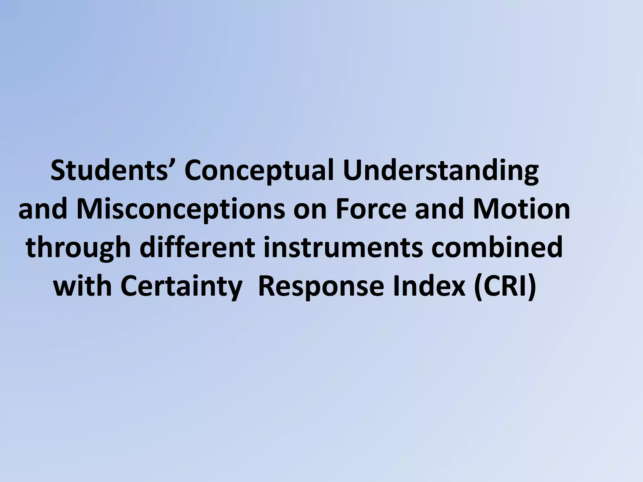 This document summarizes a research project investigating students' conceptual understanding and misconceptions about force and motion. The researcher administered three tests - the Force Concept Inventory, Mechanics Baseline Test, and Force and Motion Conceptual Evaluation - to science students from various schools. Results showed that students had lower achievement scores than misconception scores, indicating many held alternative conceptions. Gender and school type generally did not significantly impact misconception levels. The researcher concludes many students have misconceptions and suggests teaching approaches to minimize them, such as considering students' backgrounds and experiences.