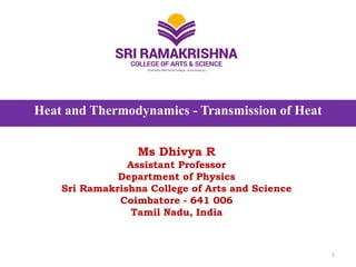 The document discusses heat transfer and thermal conductivity. It defines heat transfer as the process by which internal energy transfers from one substance to another. The three main modes of heat transfer are conduction, convection, and radiation. Conduction involves heat transfer through direct contact without particle movement. Convection occurs through the movement of heated particles. Radiation transfers heat directly through space without an intervening medium. Thermal conductivity is measured as the rate of heat transfer and can be used to analyze heat flow in materials.