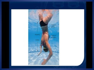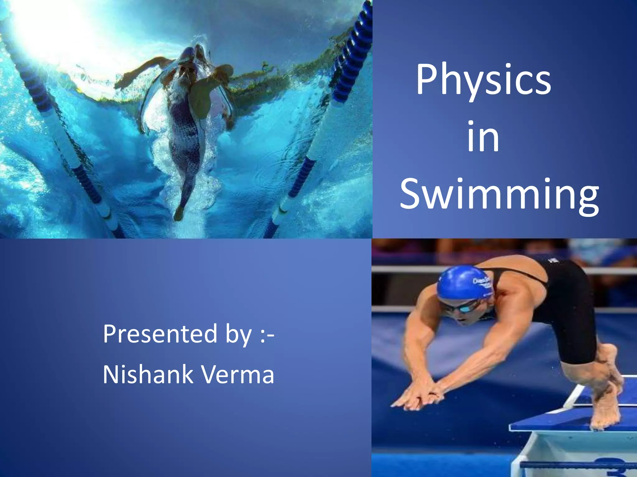 1) Acceleration, momentum, force, velocity, and Newton's laws of motion are explored in the context of diving, flip turns, and propelling through the water.