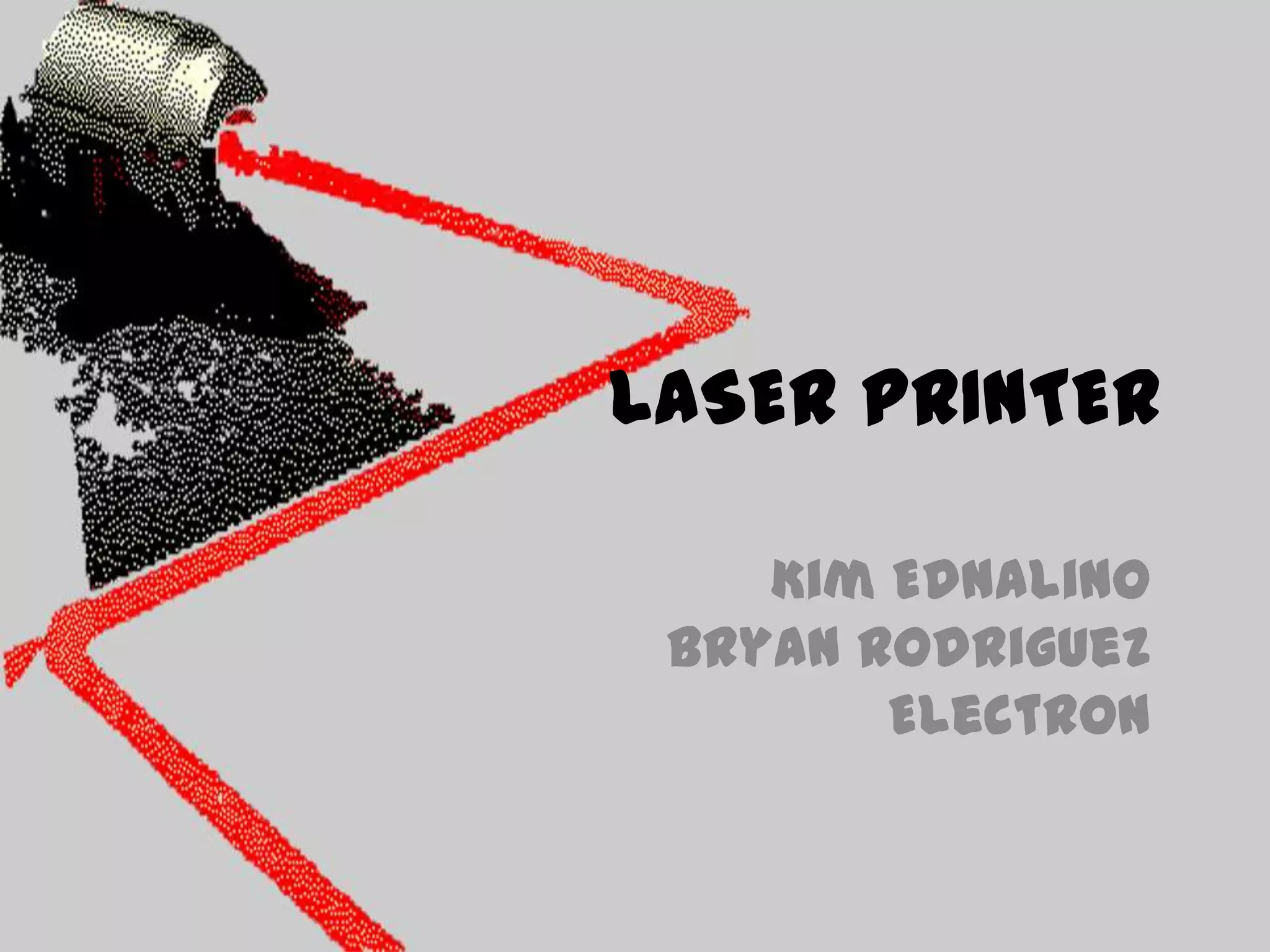 This document explains how a laser printer works. It uses a xerographic process to quickly print high-quality graphics and text. The main parts are the photoreceptor drum, corona wire, laser, toner, and fuser rollers. The process involves charging the drum, using a laser to draw the image as electrostatic lines, applying toner which sticks to the lines, transferring the image to paper, and fusing it with heat rollers. Before repeating the process, the drum is cleaned to remove any leftover toner or charge. The key principle behind laser printing is using static electricity to transfer images.