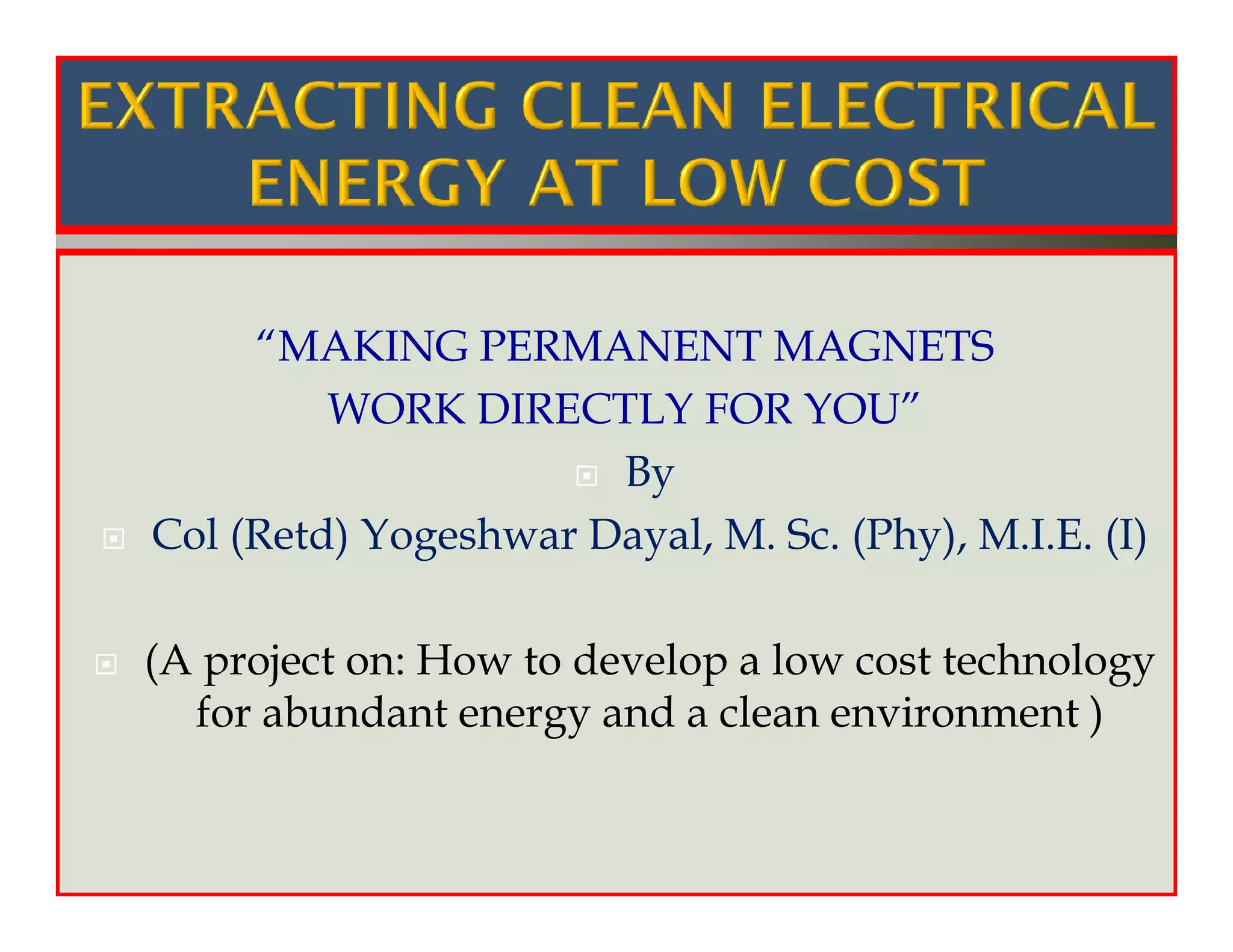 1. The document proposes a device that extracts electricity from permanent magnets to generate energy in a self-sustaining manner.