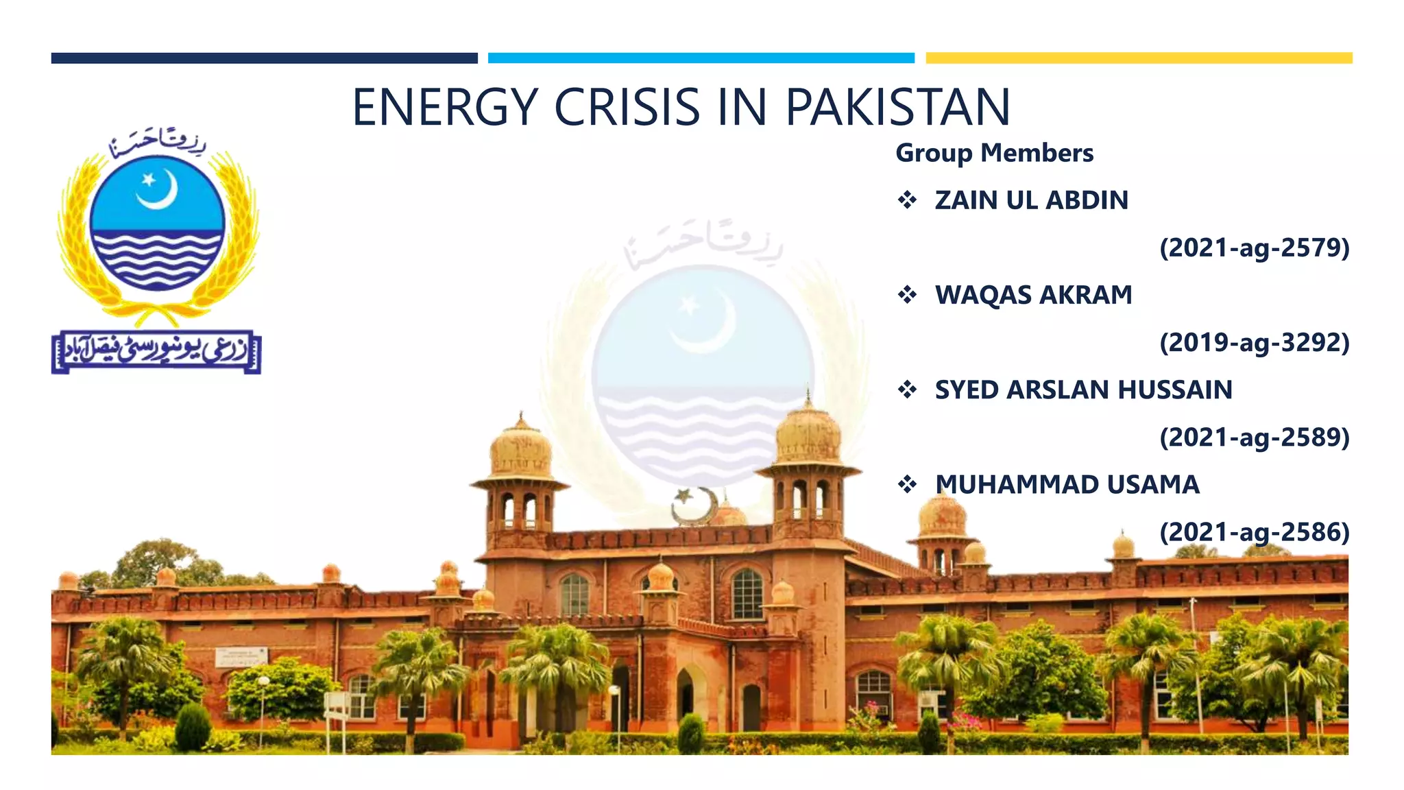 The document discusses Pakistan's ongoing energy crisis. It began in 2007 due to a shortage of electricity and natural resources like oil. This large gap between supply and demand has led to economic and political instability, industry closures, unemployment, and social issues for Pakistan over the past 15 years. The document recommends short-term solutions like increasing private power producers and importing electricity, as well as long-term plans such as building more dams, developing coal power plants, and exploring more oil, gas, and coal reserves.