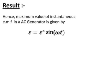 Saksham Anand, a class 12 student, completed a physics investigatory project on AC generators under the guidance of his teacher Mr. Anil Sharma. The project report includes sections on the principle, construction, theory, circuit diagram, working, expression for instantaneous EMF, results, and applications of AC generators. Saksham thanks his teacher for his valuable guidance and support in completing the project, which fulfills a requirement for his class 12 physics practical examination conducted by the CBSE. Sources consulted for the project include textbooks, manuals, the teacher, and various websites.