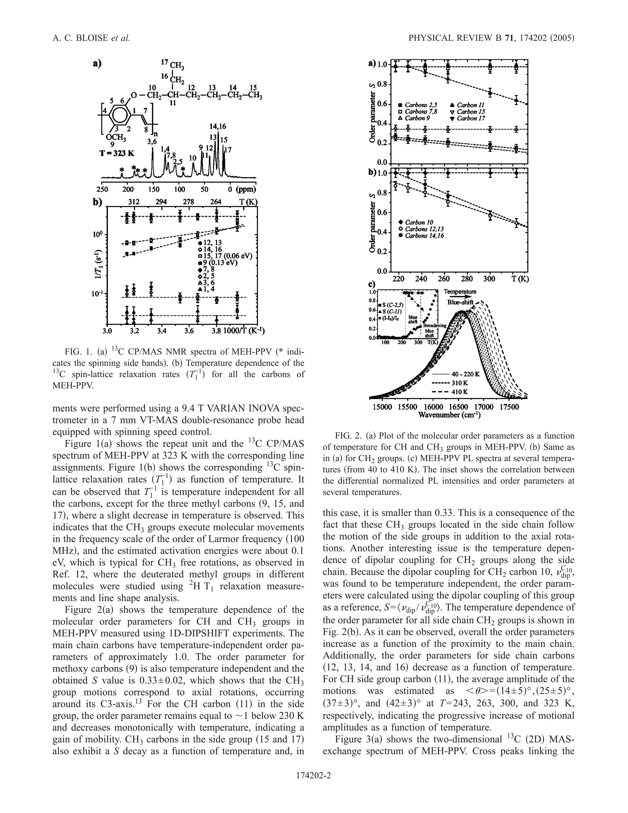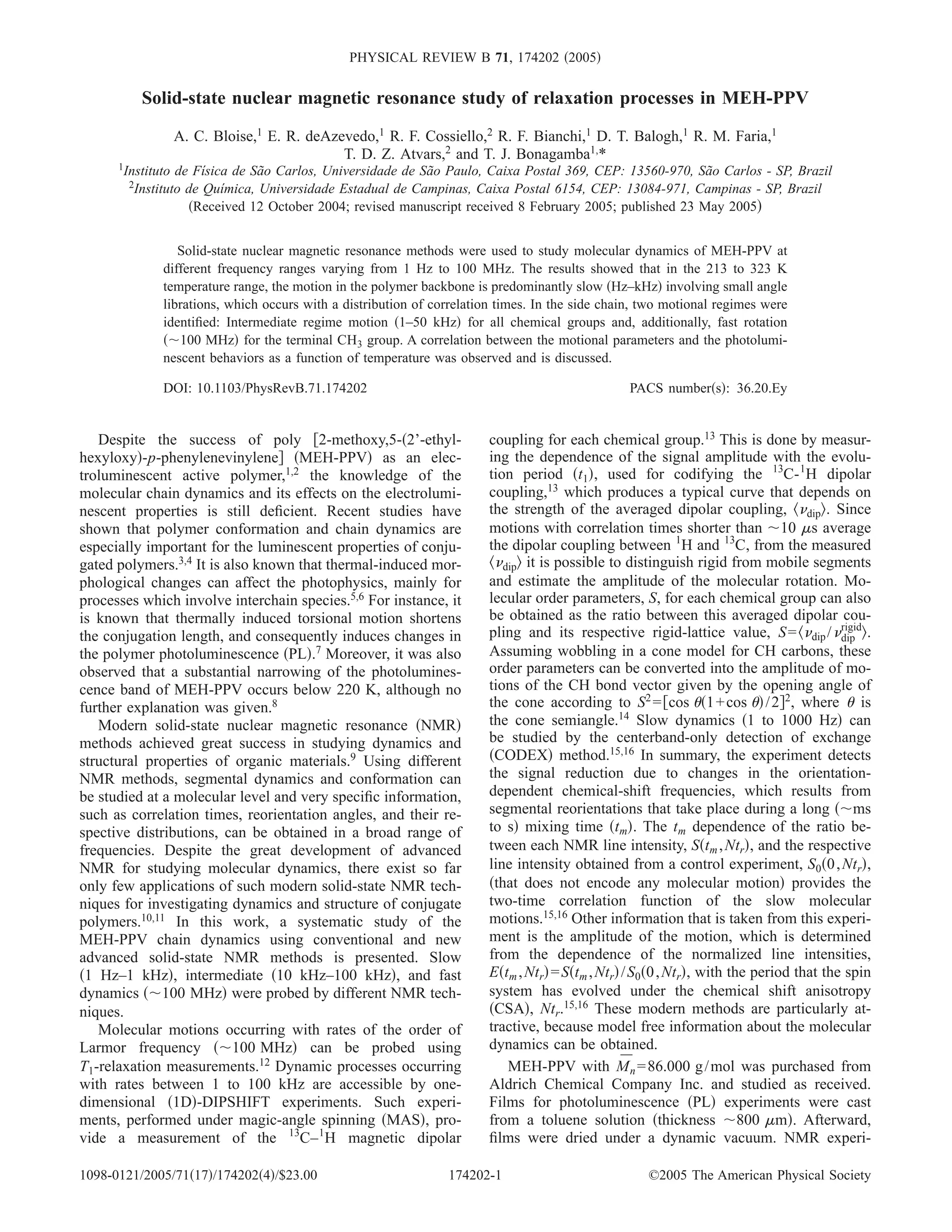 This document summarizes a solid-state nuclear magnetic resonance study of molecular dynamics in the polymer MEH-PPV. The main findings are: