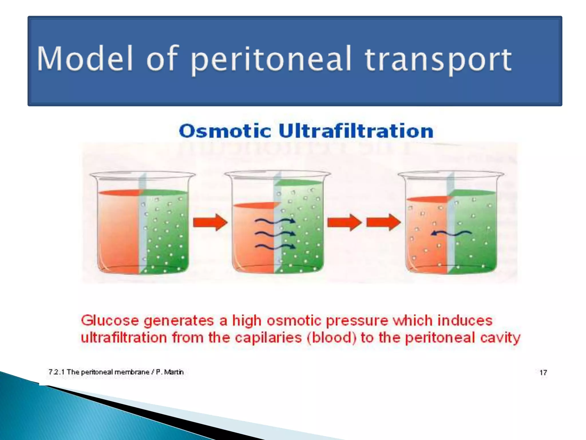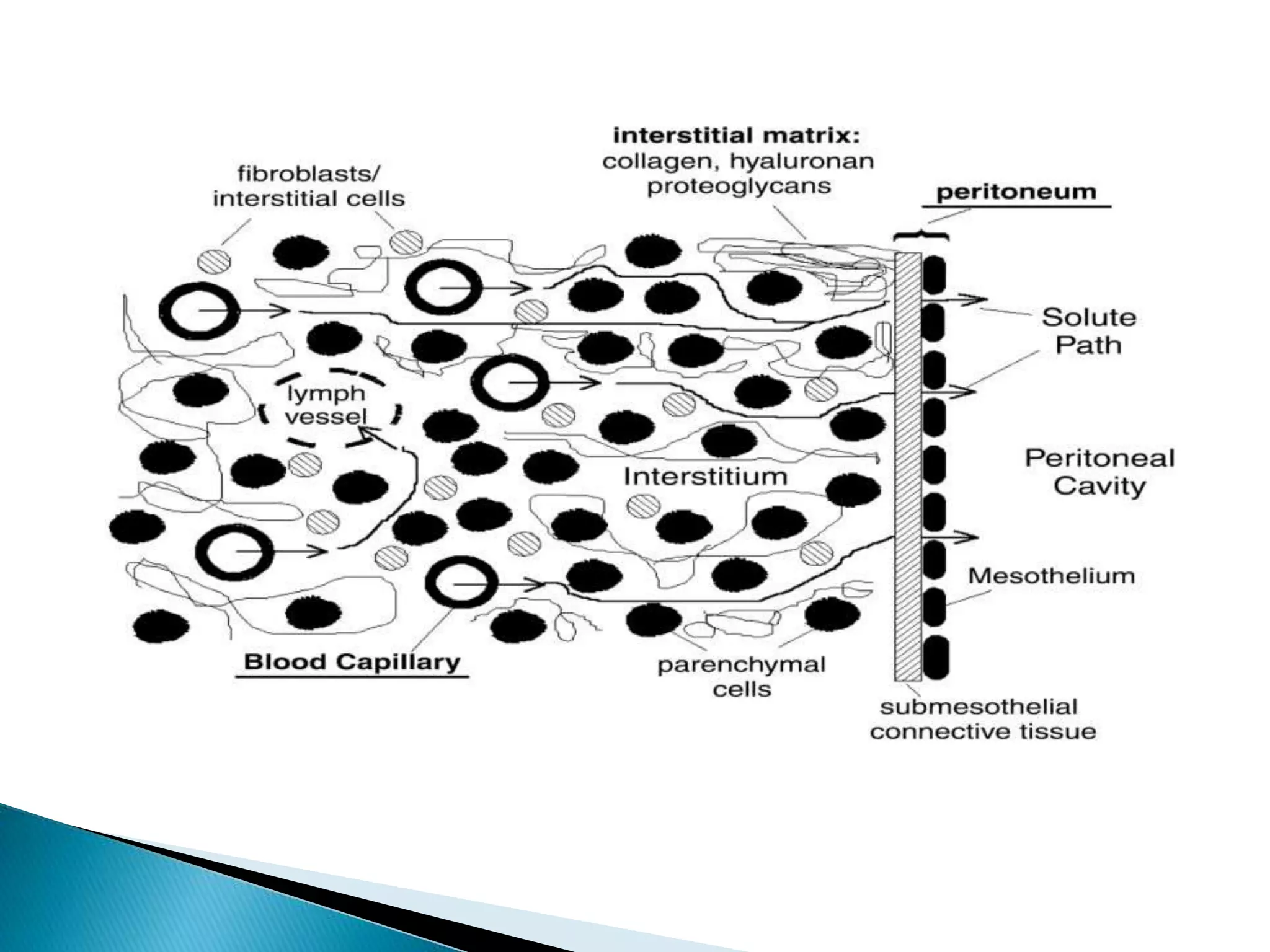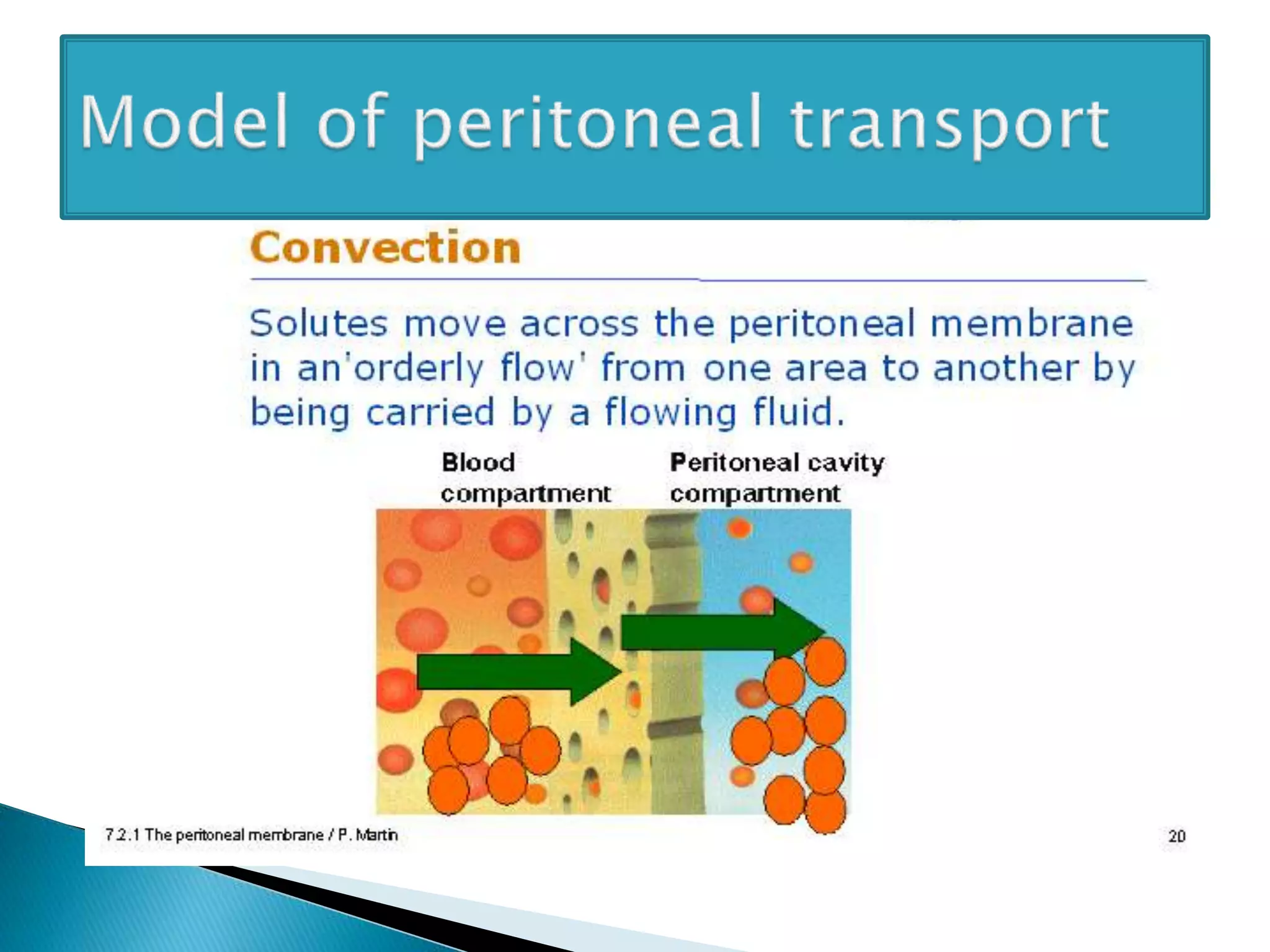 This document discusses the history and physiology of peritoneal dialysis. It outlines the key contributors to the development of PD from the 1800s onward. It then describes the anatomy of the peritoneal membrane and its blood supply. The three pore model of peritoneal transport is explained, including diffusion, convection, ultrafiltration and their roles in solute and fluid removal. Long term changes to the peritoneal membrane are also summarized.