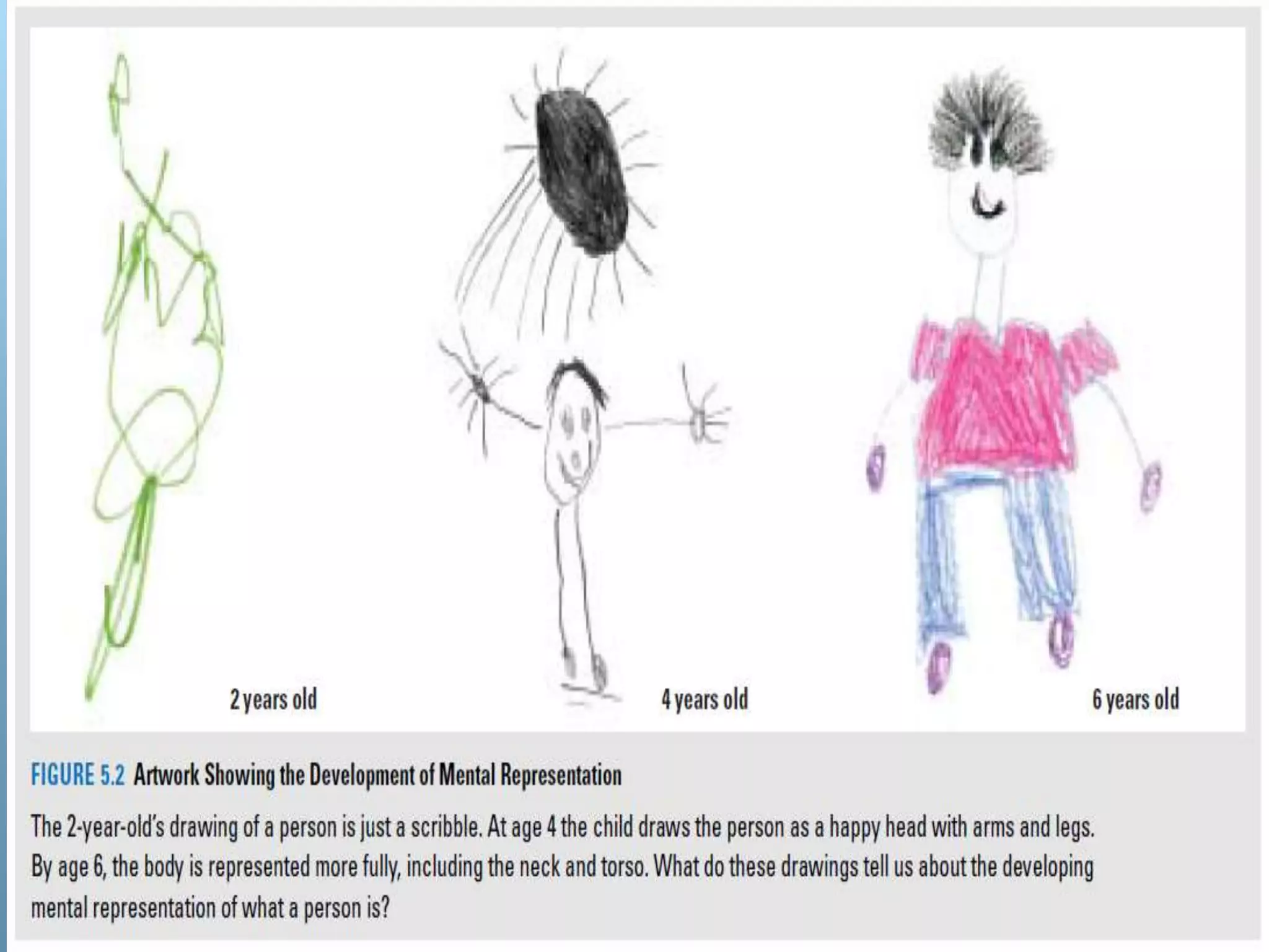 1) Sensorimotor stage (birth to 2 years) - Infants rely on senses and motor skills to understand world without mental representations.
