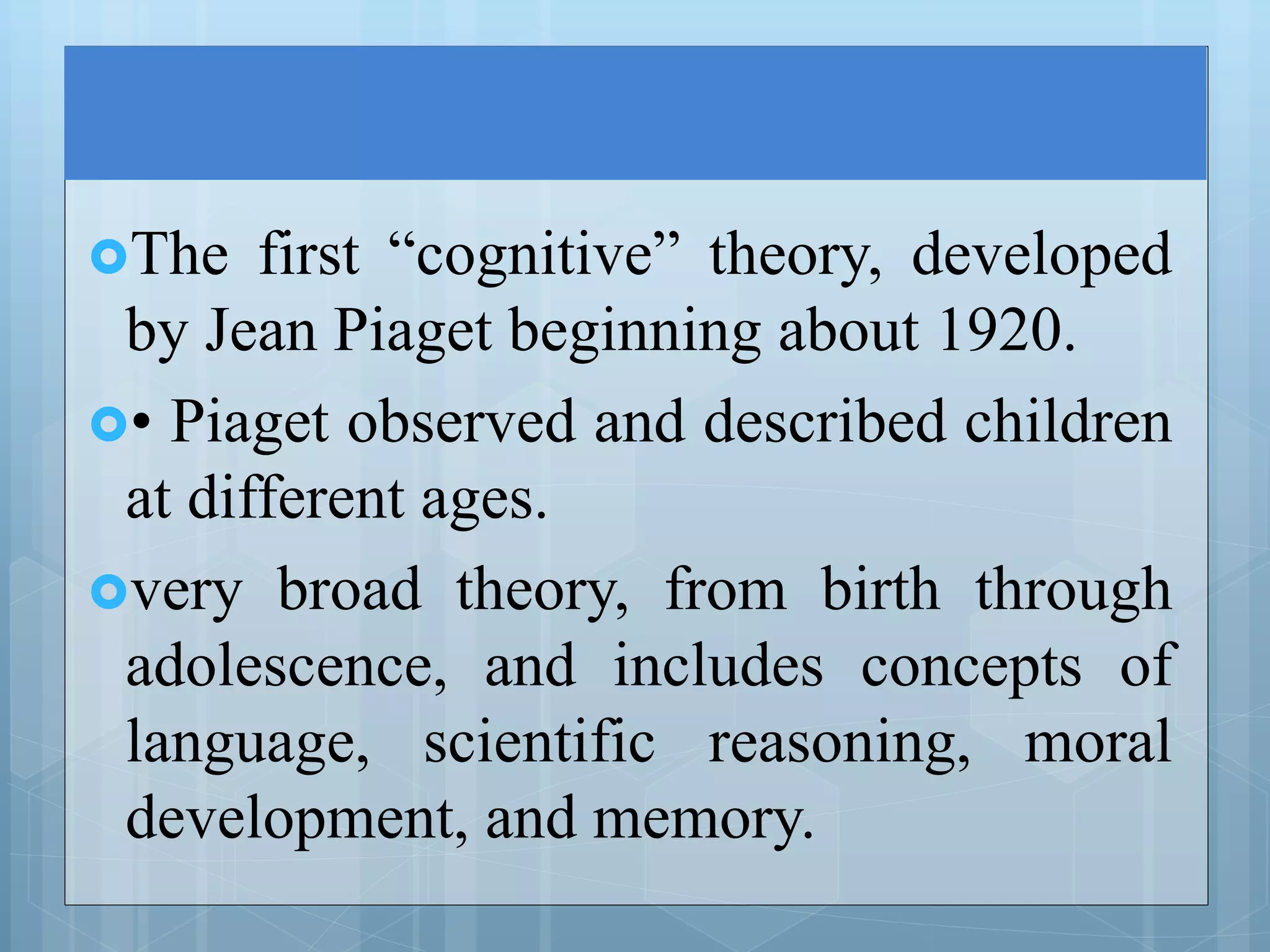 Piaget's theory of cognitive development outlines four stages from birth through adolescence: