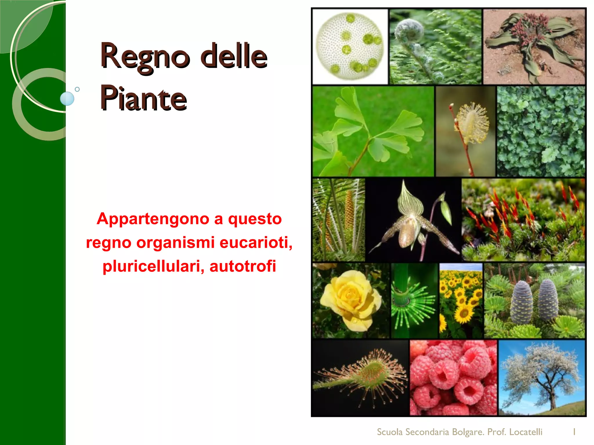 Il documento analizza il regno delle piante, suddividendo le specie in quattro gruppi principali: briofite, pteridofite, gimnosperme e angiosperme, evidenziando le loro caratteristiche anatomiche e cicli di vita. Le piante mostrano adattamenti diversi alla vita terrestre, con angiosperme che hanno sviluppato fiori e frutti per facilitarne la riproduzione. Infine, viene sottolineato il ruolo ecologico di ciascun gruppo di piante nel mantenimento degli ecosistemi.