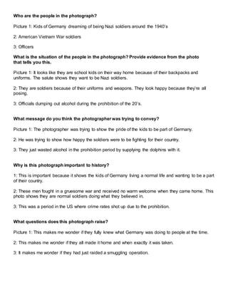 The document summarizes and analyzes three historical photographs from different time periods and locations: