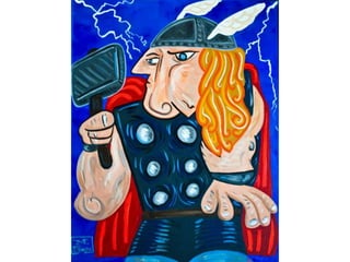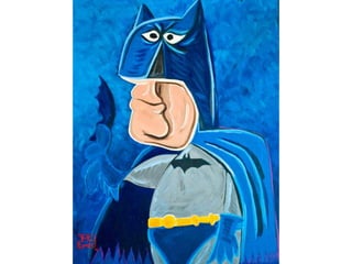 Pablo Picasso, a prominent abstract artist of the early to mid-20th century, is renowned for establishing the cubism movement, characterized by geometric shapes and multiple perspectives. His artistic evolution includes the Blue and Rose periods, both leading to his revolutionary cubist works that reject traditional realism. The document also encourages the creation of cubist superhero art, referencing various examples available online.
