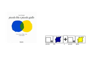Il racconto narra di piccolo blu che, annoiato a casa, va a cercare il suo migliore amico piccolo giallo. Dopo vari tentativi, finalmente lo trova e, abbracciandosi forte, i due diventano verdi. Il tema centrale è l'amicizia e il desiderio di stare insieme.
