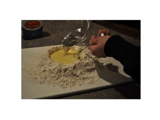 The document provides a recipe for homemade pici pasta and meat sauce. It includes instructions for making the dough with flour, water and eggs, kneading it for 5-10 minutes, rolling it into thin strips, and cooking it for 5 minutes until al dente. It also includes a recipe for traditional Tuscan meat sauce made with olive oil, onions, carrots, celery, ground beef, Italian sausage, tomatoes, and red wine or vinegar, simmered for at least 45 minutes. The pasta and sauce are then tossed together and served hot, topped with parmesan cheese.
