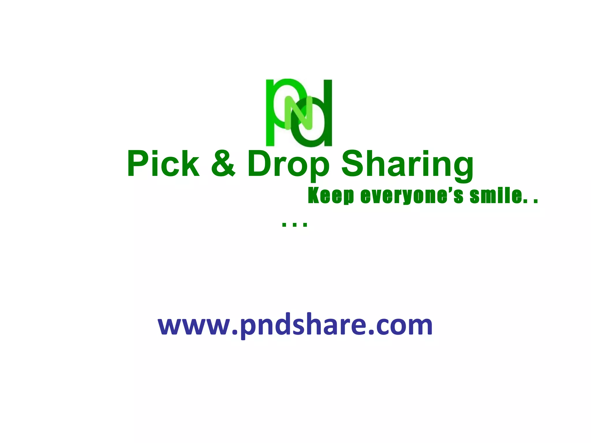 The document promotes the carpooling website www.pndshare.com. It discusses issues with traffic congestion, lack of parking, and environmental pollution from the large number of cars on the road. The website aims to connect drivers with empty seats to people traveling the same route to reduce these problems. It emphasizes that carpooling would lessen traffic, cut fuel use and emissions, and save people money while allowing them to socialize during trips. The service is free to use for both individual travelers and organizers of events who want to promote carpooling to their attendees.