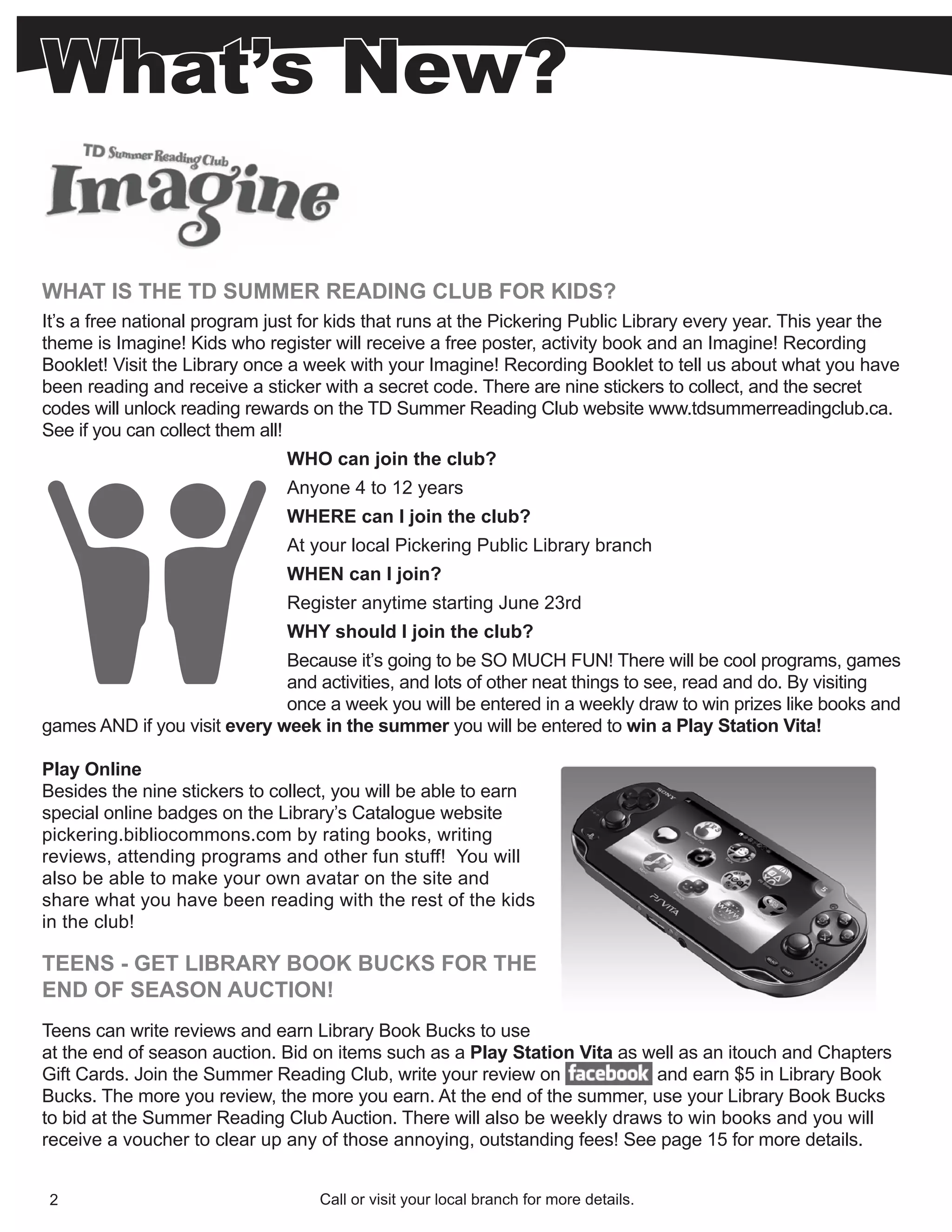 The document provides information about the TD Summer Reading Club for children ages 4-12 at the Pickering Public Library. It describes what the club is, who can join, when and where to register. It promotes the club as fun way for kids to read over the summer and earn prizes. The document also lists many related children's programs happening at various library branches in July, such as storytimes, puppet shows, and arts and crafts activities with themes like fairies, aliens, and Dr. Seuss.