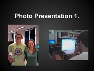 The document outlines 13 photos that show the progress of building a model skyscraper. The photos document the initial floor plan, a 3D rendering of the project, elevations of the first half completed, revisions removing four pillars, the builder cutting materials, all pieces cut out, assembling the model, the two halves completed, and unfinished and finished floors of the office space.