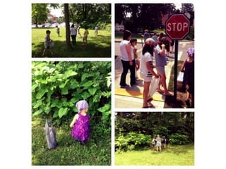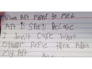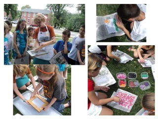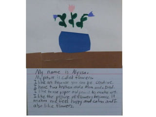 The document discusses the 'Picture This' program that combines art and literacy by engaging children in artistic adventures to enhance their imagination, critical thinking, and observation skills. It outlines various activities, such as creating portfolios and hosting an art show, where children explore the techniques of renowned illustrators and artists while developing reading-related skills. Additionally, it provides resources and examples for implementing art-based learning experiences in libraries and educational settings.