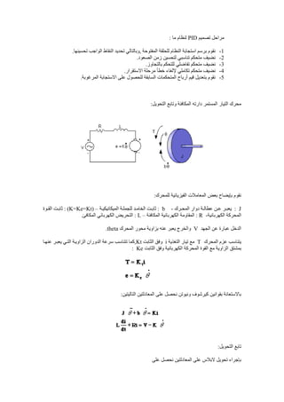 يتناول الوثيقة نظام التحكم PID الذي يتضمن ثلاثة عناصر رئيسية: الربح التناسبي، والتكاملي، والتفاضلي، وكيفية استخدامها لتحسين استجابة النظام. يتم تحديد وتحليل معاملات النظام لتحسين الأداء والوصول إلى استجابة مرغوبة. يُستخدم MATLAB كمحاكاة لمراقبة استجابة النظام والتحكم فيه.