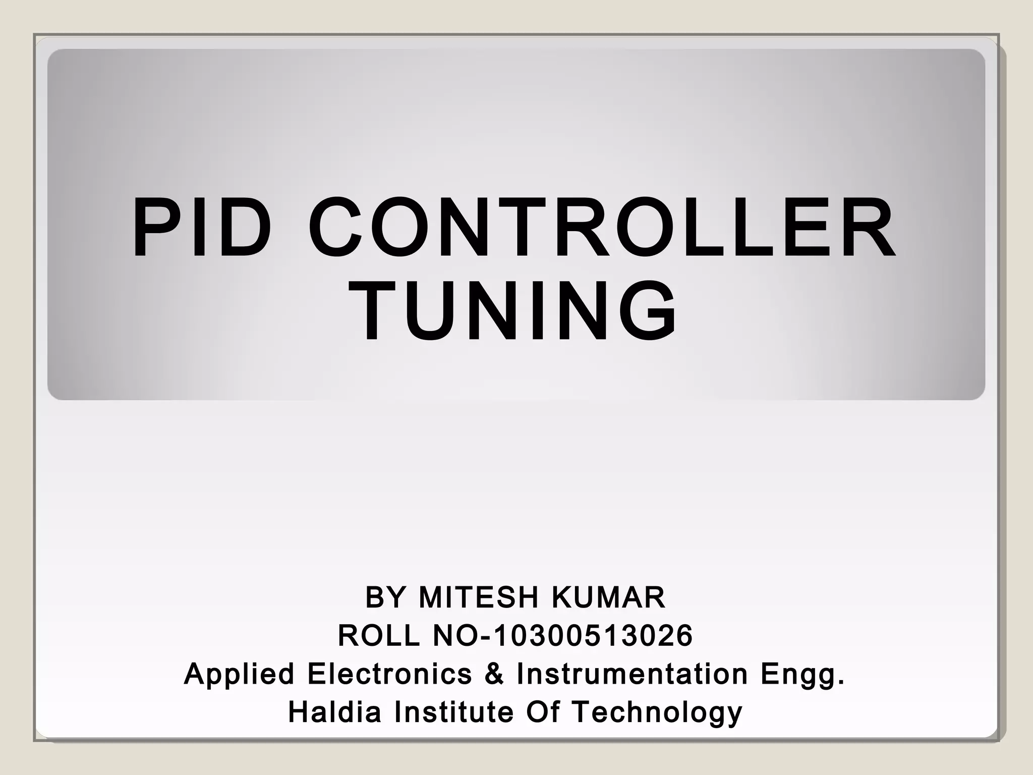 This document discusses PID controller tuning. It defines what a PID controller is and its components - proportional, integral and derivative terms. It describes three common methods for tuning PID parameters: Ziegler-Nichols open loop method which relates process parameters to controller parameters; closed loop Ziegler-Nichols method which introduces oscillations and varies parameters; and trial and error method starting with maximum proportional band and minimum other terms then adjusting. Performance criteria for tuning are listed as minimizing error, settling time, and overshoot.