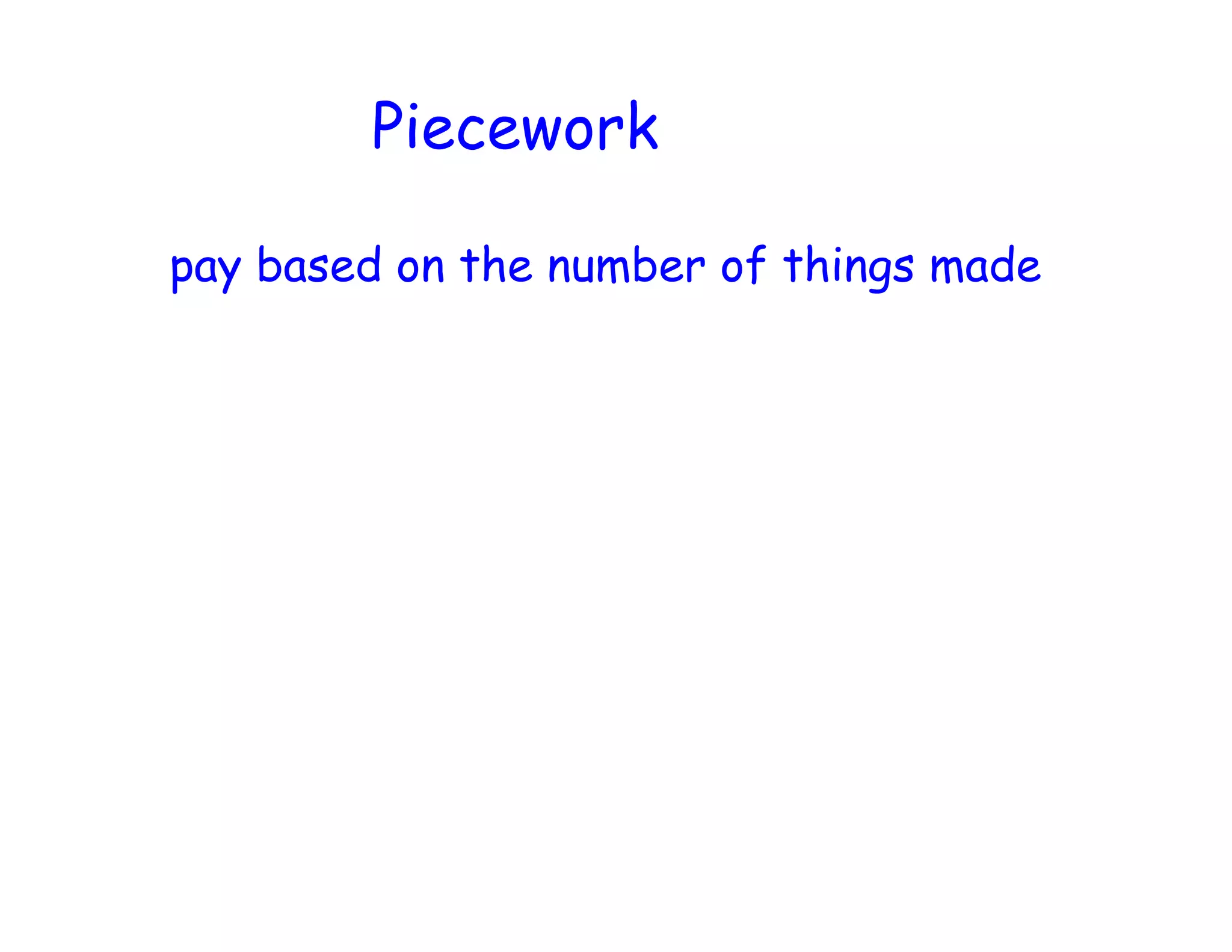 This document provides examples of calculating pay under a piecework system where workers are paid per item produced. In the first example, a worker is paid $3 per shirt and earns $24 for sewing 8 shirts in an hour. The second example shows a worker paid $30 for every 50 sandwiches, earning $210 for making 350 sandwiches. The third example calculates a shoe maker's weekly pay of $400 for making 4 shoes per hour over a 40 hour week at $2.50 per shoe.