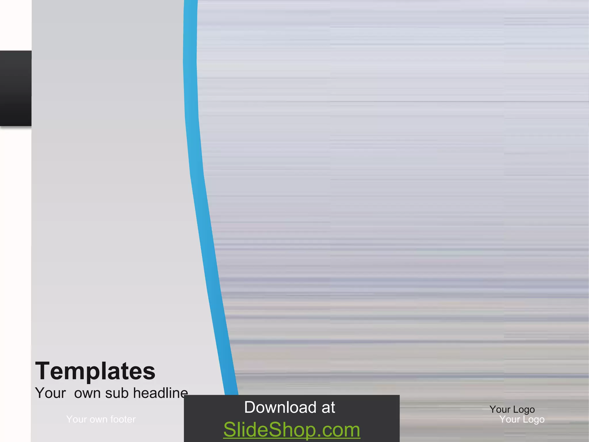 The document serves as a template for customizable presentation slides from slideshop.com, featuring placeholders for various text and graphics such as logos, agendas, and subheadlines. It encourages users to replace example text with their own content while highlighting available templates for headings and diagrams. The repetitive structure suggests a focus on adaptability and ease of personalization for creating professional presentations.
