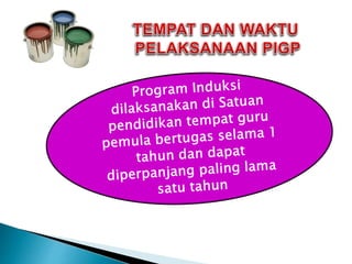 Dokumen ini membahas program induksi untuk guru pemula di Kecamatan Martapura, termasuk tujuan, kebijakan, dan tahapan pelaksanaannya. Program ini bertujuan untuk membantu guru pemula beradaptasi dengan lingkungan kerja dan menerapkan pendidikan yang bagus, serta menjadi syarat pengangkatan jabatan fungsional. Selain itu, bagi guru yang telah menyelesaikan program induksi akan mendapatkan sertifikat sebagai tanda kelulusan.