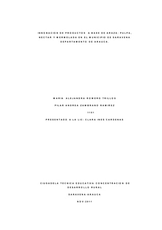 IN N OV A C IÓ N D E P R O D U C TO S A B A S E D E A R A ZA : P U LP A ,