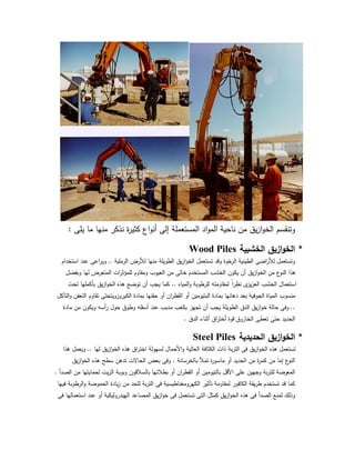 ﻓﻰ ﺑﻌد ﻓﯾﻣﺎ ﺳﯾذﻛر ﻛﻣﺎ اﻟﺳﺣﺎب ﻧﺎطﺣﺎت ﻟﻣﺑﺎﻧﻰ اﻟﺧﺎﺻﺔ اﻷﺳﺎﺳﺎت.ﺳﻣك ﯾدزﯾ وﻗد وﺧﻼﻓﺔ اﻟﺻدأ ﻧﺗﯾﺟﺔ اﻟﺗﺂﻛل ﻣن ﻣﻧﻪ ﯾﻧﺗظر ﻣﺎ ﻟﺗﻌوﯾض اﻟﺣﺎﻻت ﺑﻌض ﻓﻰ اﻟﺧﺎزوق. *اﻟﻣرﻛﺑﺔ ازﯾقواﻟﺧComposite Piles وﯾﺗﻛونﺛم اﻟﺗﺄﺳﯾس ﺳطﺢ ﺣﺗﻰ اﻷرض ﻓﻰ ﺧﺷﺑﻰ ﺧﺎزوق دق ﻣﺛل ﻣﺧﺗﻠﻔﺗﯾن ﻣﺎدﺗﯾن ﻣن ﯾقزاواﻟﺧ ﻣن عاﻟﻧو ﻫذا اﻟوﺳﺎدة ﺳطﺢ إﻟﻰ ﯾﺻل ﻓوﻗﻪ ﺧرﺳﺎﻧﻰ ﺧﺎزوق ﻋﻣل.اﻟﻣﯾﺎﻩ ﻣﻧﺳوب ﺗﺣت اﻟﺧﺷﺑﻰ اﻟﺧﺎزوق اﺳﺗﻌﻣﺎل وﯾﻌﺗﺑر ﺗوﻓ ﯾﻌطﻰ اﻟﺟوﻓﯾﺔ اﻟﻣﯾﺎﻩ ﻓوق اﻟﺧرﺳﺎﻧﺔ أﺳﺗﻌﻣﺎل أﻣﺎ ﻟﻠﺧﺷب أطول ﺣﯾﺎة ﯾﻌطﻰ اﻟﺟوﻓﯾﺔاﻷﺳﺎﺳﺎت ﻓﻰ ﯾر. *اﻟﺧرﺳﺎﻧﯾﺔ ازﯾقواﻟﺧConcrete Pile Foundations اﻟطرق وﻫذﻩ ﻟﻠﺗﺄﺳﯾس اﻟﺻﺎﻟﺣﺔ اﻏﻠطﺑﻘﺔ إﻟﻰ ﻟﻠوﺻول اﻟدق ﯾﻘﺔرط ﻋﻠﻰ ﺗﻌﺗﻣد ﯾقزاواﻟﺧ ﻫذﻩ ﻣن ةرﻛﺛﯾ اعوأﻧ ﻫﻧﺎك ﺧﺎﺻﺔ اﺻﻔﺎتووﻣ ﺷروط ﻣﻧﻬﺎ وﻟﻛل ﻟﻬﺎ اﻟﻣﻧﻔذة اﻟﺷرﻛﺎت ﺑﺄﺳﻣﺎء ﻣﺳﺟﻠﻪ.ﻋن اﻟﻣﺳﺋول اﻟﻣﻬﻧدس وﻋﻠﻰ اﻷﺳاﻟﺗﺣﻣﯾل أرض ﻋﻠﻰ ﻫﺎوﻣﻘدار اﻷﺣﻣﺎل اﻛزروﻣ ﻟﻠﻣﺑﻧﻰ اﺳﺗﻌﻣﺎﻟﺔ ادراﻟﻣ اﻟﺧﺎزوق اﺳم ﯾذﻛر أن ﺎﺳﺎت.وﺑذﻟك عاﻟﻣﺷرو ﻣﻬﻧدس ﯾﻌﺗﻣدﻫﺎ اﻟﺗﻰ اﻷﺳﺎﺳﺎت وﺗﻧﻔﯾذ ﺗﺻﻣﯾم ﻋﻣل ﻣﺳﺋوﻟﯾﺔ اﻟﺷرﻛﺎت ﺗﺄﺧذ. اﻵﺗﯾﺔ اعواﻷﻧ إﻟﻰ ﻟذﻟك ًﺗﺑﻌﺎ اﻟﺧرﺳﺎﻧﯾﺔ ﯾقزاواﻟﺧ وﺗﻧﻘﺳم: -اﻟﻣﺳﻠﺣ اﻟﺧﻼﺳﺎﻧﺔ ازﯾقوﺧاﻟﺻب ﺳﺎﺑﻘﺔ ﺔ Precast reinforced concrete piles ﻣن ﻗطﺎﻋﺗﺎﺗﻬﺎ وﺗﺧﺗﻠف اﻻﺳﺗﻌﻣﺎل ﺷﺎﺋﻊ عاﻟﻧو وﻫذا٣٠×٣٠إﻟﻰ ﺳم٥٠×٥٠ﻣن ﻓرم ﻓﻰ وﺗﺻب ﺳم اﻟﺧرﺳﺎﻧﺔ ﻟدﻣك اتزازاﻟﻬ وﺗﺳﺗﻌﻣل اﻟﺣدﯾد أو اﻟﺧﺷب..ﻋن ﯾﻘل ﻻ ﺗﺳﻠﯾﺣﻬﺎ وﺣدﯾد١.٥%ﻗطﺎع ﻣﺳﺎﺣﺔ ﻣن ﻛل وﻛﺎﻧﺎت اﻟﺧﺎزوق٢٠ﺳم.وﻟﻣﺳﺎﻓﺔ اﻟﺧﺎزوق أسر ﻋﻧد اﻟﻛﺎﻧﺎت ﺗﺗﻘﺎرب أن ﯾﺟب اﻟدق ﺟﻬد ﻟﻣﻘﺎوﻣﺔ٣أﻣﺛﺎل ﻗﺑل اﻟﺧﺎزوق ﯾدق ﻻو اﻟﺧﺎزوق ﻗطر٢٨ﺻﺑﺔ ﻣن ﯾوم. -ﻣوﻗﻌﻬﺎ ﻓﻰ اﻟﻣﺻﺑوﺑﺔ ﻗﺎﻟﺧرﺳﺎﻧﺔ يازوﺧ Cast in concrete piles ﺗﻌﻣلﯾﻣﻸ ﺛم اﻟﻣطﻠوﺑﯾن اﻟﻌﻣقو ﺑﺎﻟﻘطر اﻷرض ﺛﻘب ﯾقرط ﻋن ﻣﻛﺎﻧﻬﺎ ﻓﻰ ﯾقزاواﻟﺧ ﻫذﻩأو اﻟﻌﺎدﯾﺔ ﺑﺎﻟﺧرﺳﺎﻧﺔ اﻟﻣﺳﻠﺣﺔ.. إﻟﻰ ﯾقزاواﻟﺧ ﻫذﻩ وﺗﻧﻘﺳم: