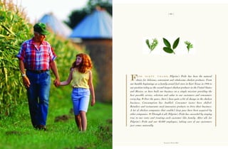 Pilgrim's Pride Corporation is the second largest chicken producer in the United States and Mexico. In 2006, it faced challenges including reduced export demand and high industry production levels, which led to lower prices. While financial performance was not strong, the company gained new business, saw growth in key product categories and channels, and launched innovative new products. It took actions like reducing production to improve its competitive position. Looking forward, the company believes opportunities like industry consolidation could help strengthen its business and profitability over the long term.